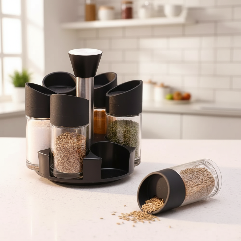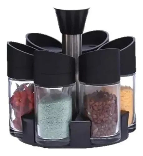 Condimentero Organizador Especiero Giratorio X6 Plástico Color Negro