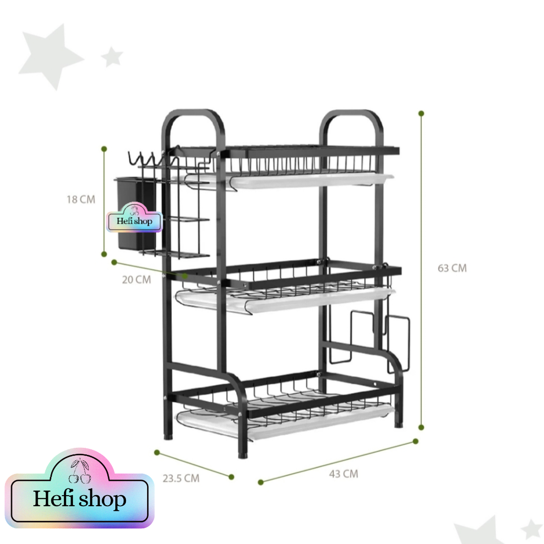 ✅ Diseño de 3 niveles para mayor capacidad.✅ Material resistente y duradero en acero inoxidable.✅ Soportes laterales para utensilios, cuchillos y cucharones.