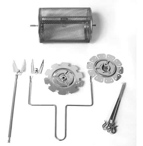 Incluye: 1 Bandeja de Crisper, 4 Bandeja de goteo, 8 Pinchos, 1 Porta broquetas ajustable y 1 herramienta de mango